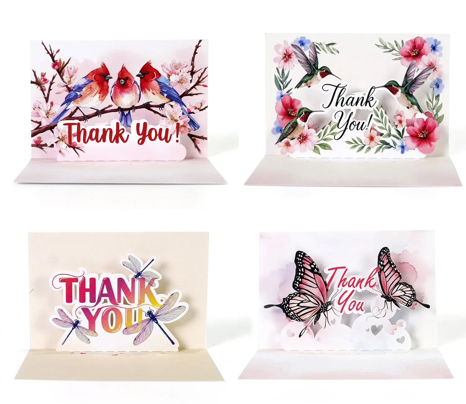 3D Pop-up Thank you greetings Card for Customers include four pop-up “Thank You” cards are visually expressive and creatively designed, each featuring nature-inspired themes that add a personal and warm touch to the message of gratitude.