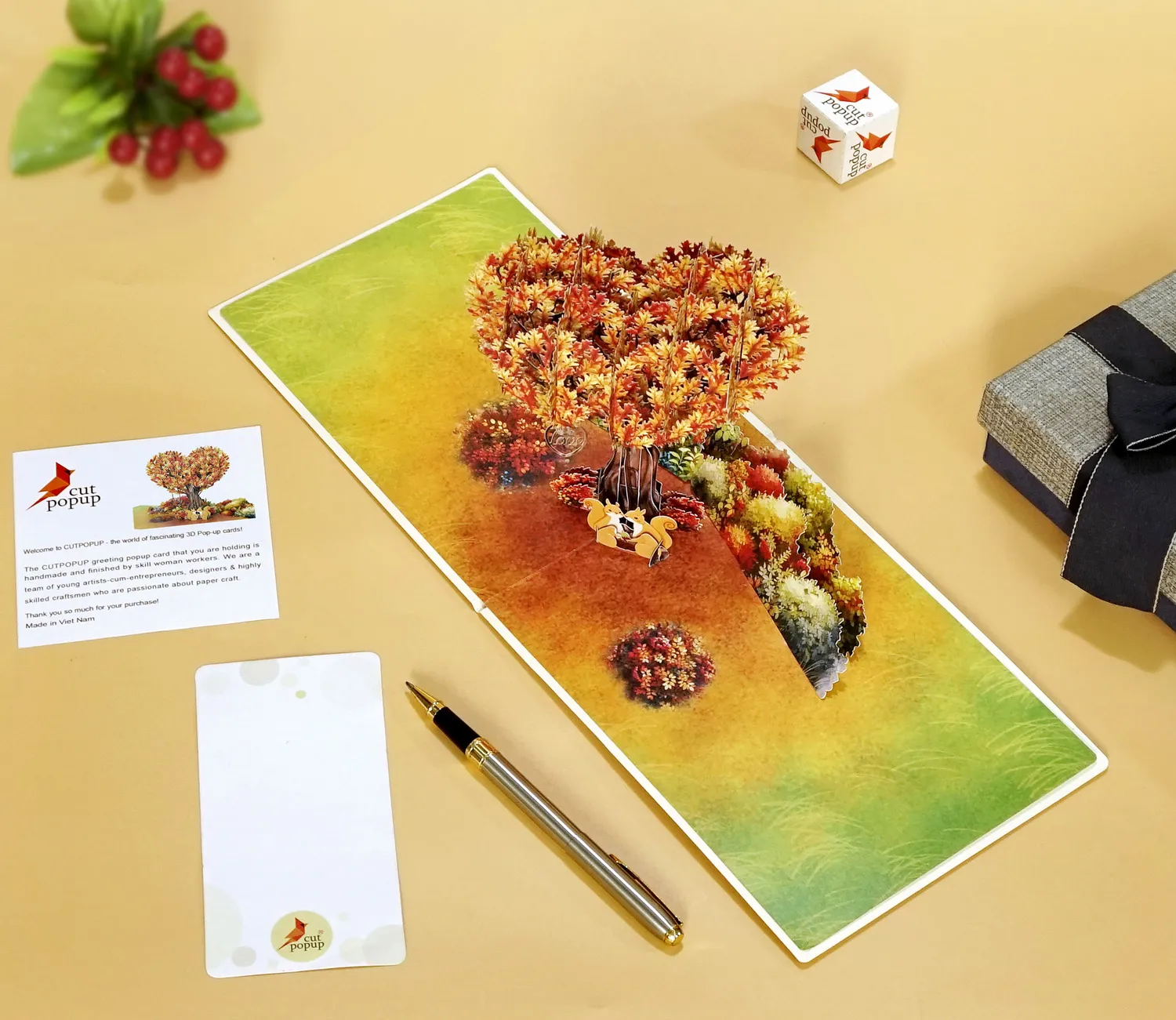 Autumn Love 3D Tree Heart Anniversary Popup Card For Valentine’s Day express how much the recipient means to you, shows thoughtfulness and appreciation for the recipient, enhancing the emotional connection between the two. It’s a simple yet profound way to express love, admiration, and commitment, making the rose a perfect emblem for Valentine’s Day or wedding anniversary.