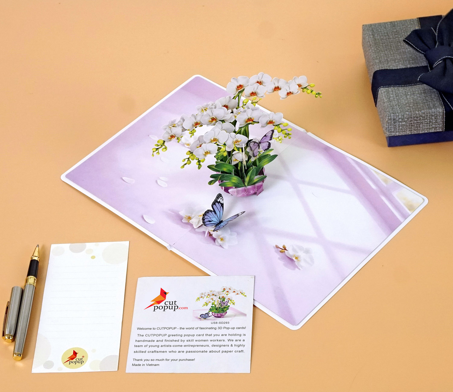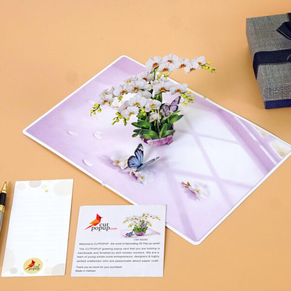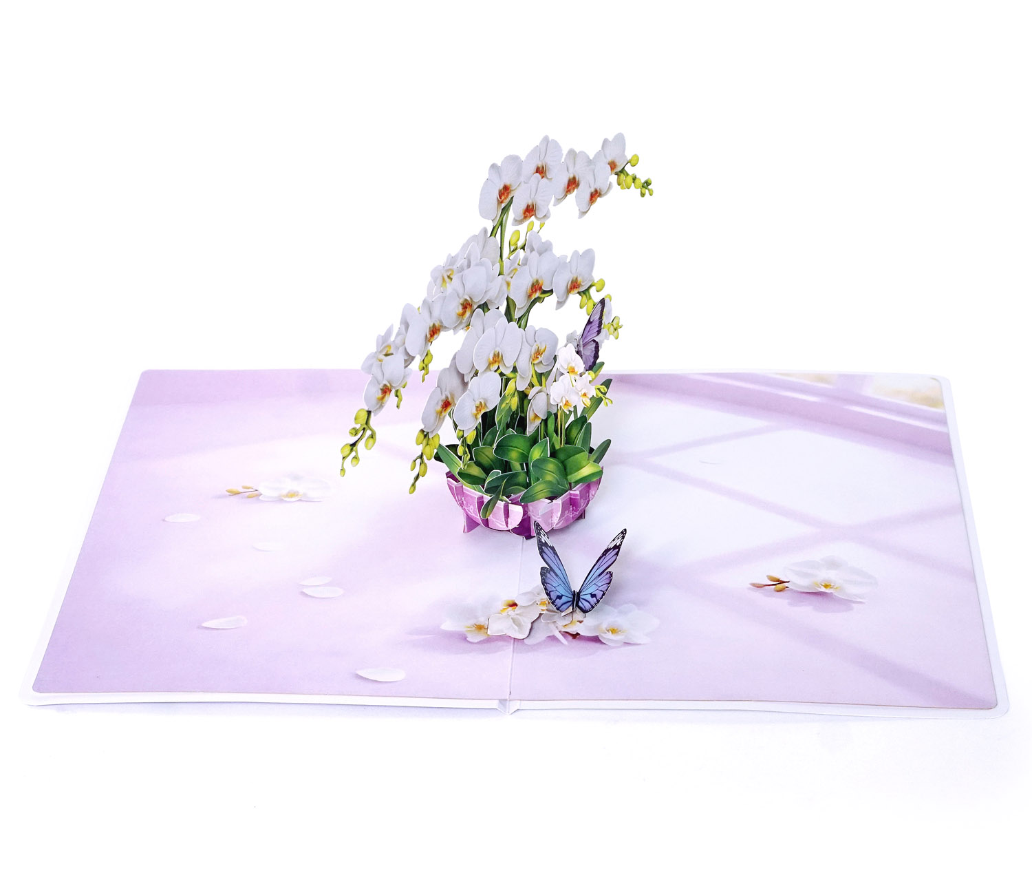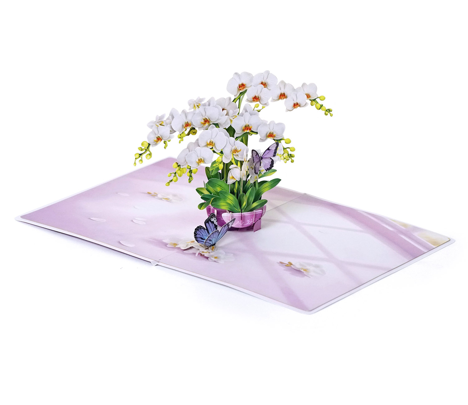 Orchids symbolize love, beauty, strength, and refinement, making this 3D card a meaningful gift for a variety of occasions. It is perfect for Mother’s Day, birthdays, anniversaries, weddings, or as a thoughtful gesture to express appreciation and gratitude. The butterflies represent transformation and joy, adding an extra layer of emotional depth to your message. Whether given to a loved one, a friend, or a valued client, this elegant pop-up card delivers not just words, but a lasting impression of care and sincerity.