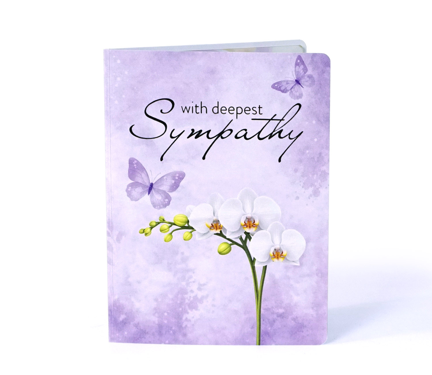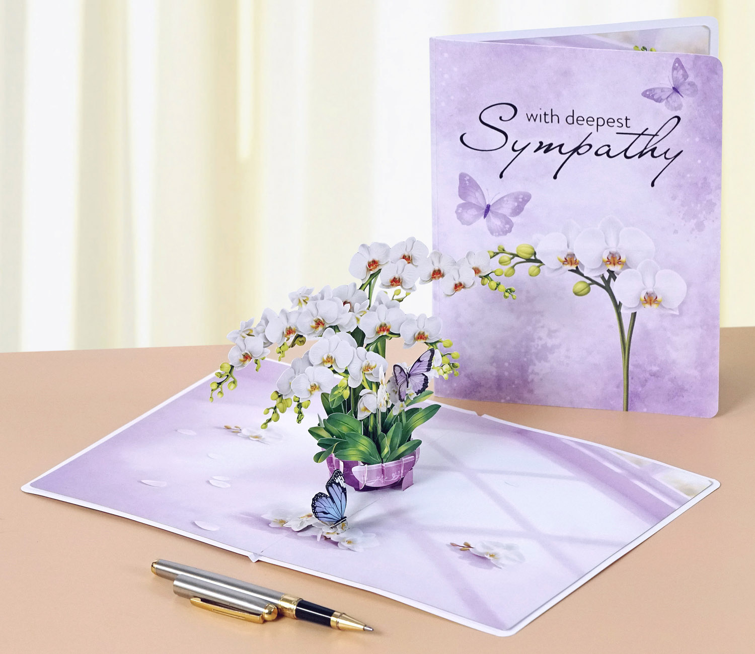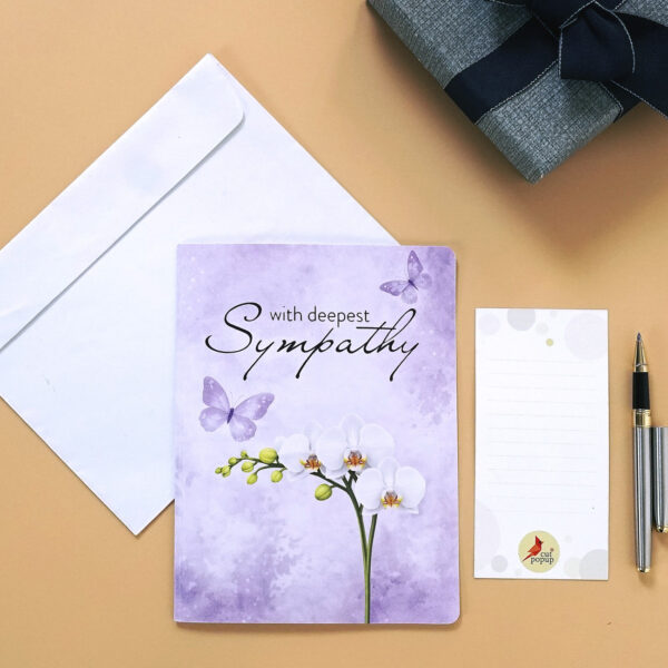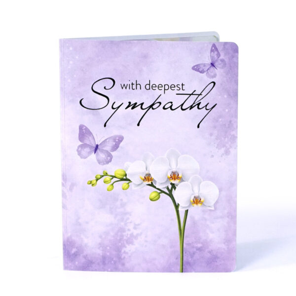 Beyond celebration, white orchids also carry a deeper sense of sympathy, remembrance, and quiet support. In moments when words feel insufficient, this card becomes a gentle way to share emotions—offering comfort, respect, and a sense of calm to someone going through loss or difficult times. The butterflies represent transformation and hope, subtly reminding the recipient of renewal and light after hardship.