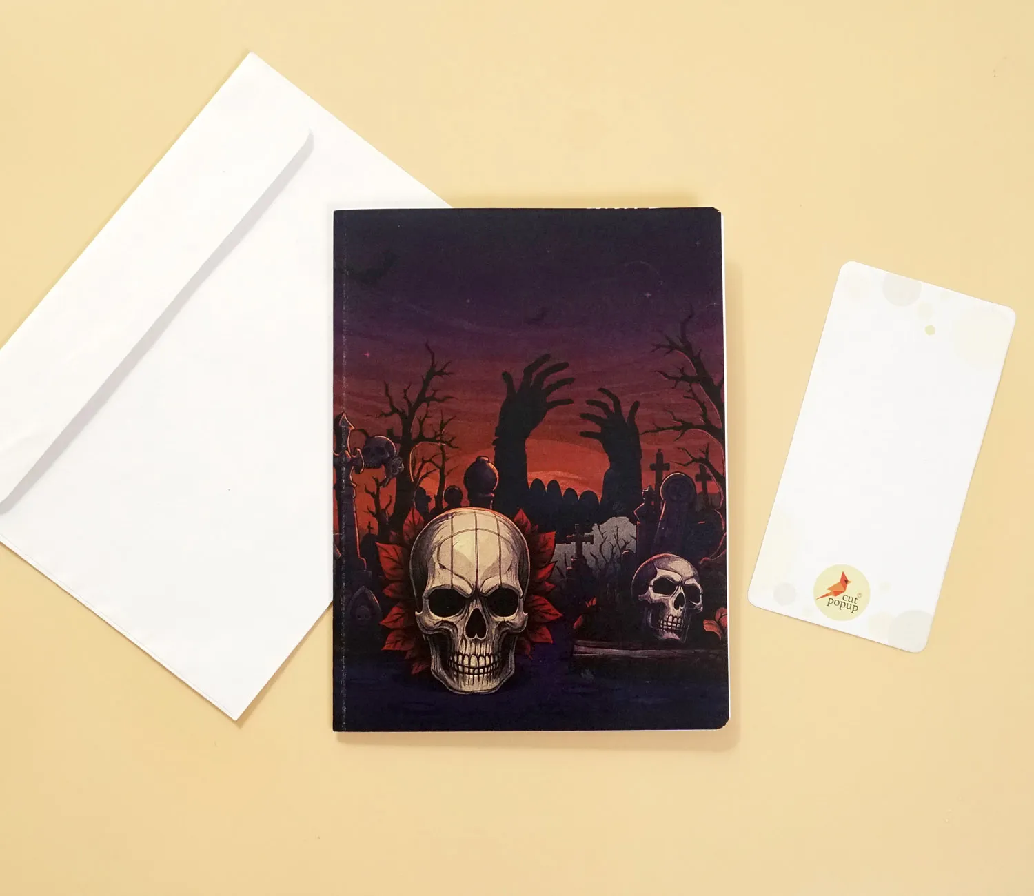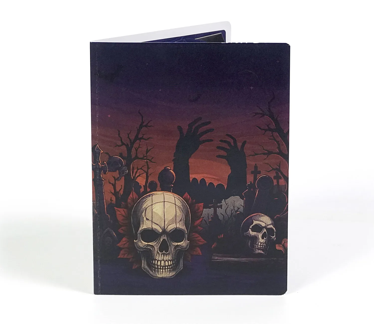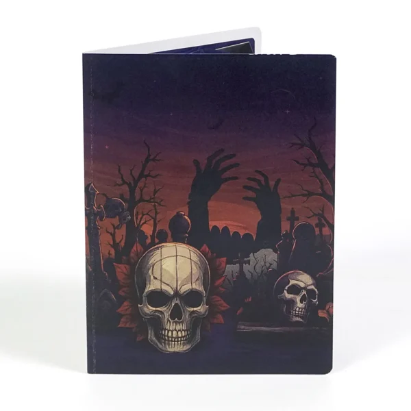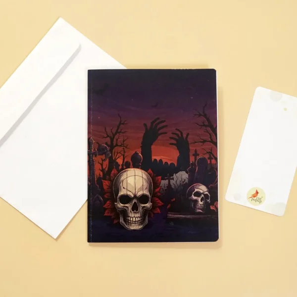 The Skyline effect gives the card remarkable depth. Each tombstone, skull, and shadowy figure stands upright, creating the feeling of stepping directly into the heart of a haunted cemetery. The bold design draws the viewer deeper with every glance, making the card feel less like paper and more like an eerie, theatrical experience.