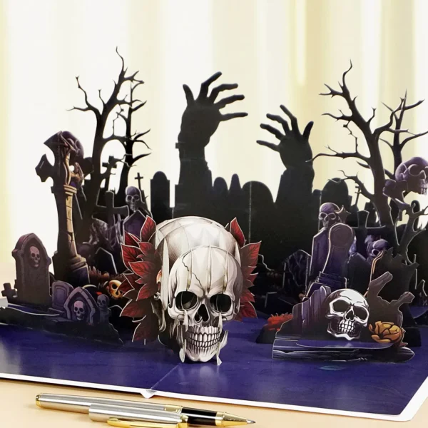 Sending a Halloween 3D Skyline greeting cards Skull offer an immersive moment of surprise, wonder, and a playful shiver that perfectly captures the spirit of Halloween. The 3D Skyline design makes it not only a message but also a keepsake—something to display as part of the season’s decorations, admired for its artistry and atmosphere.