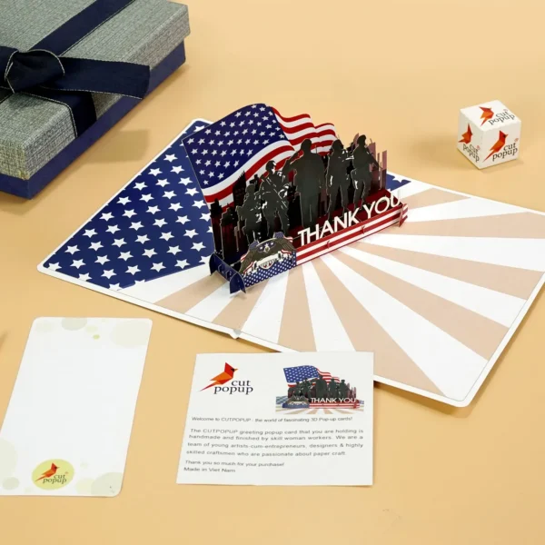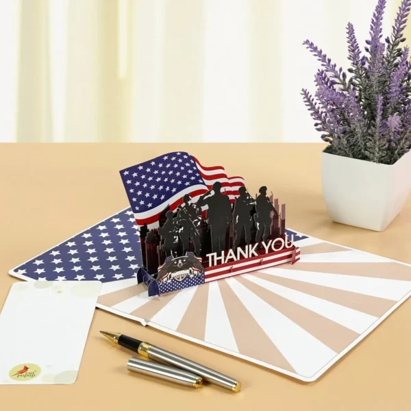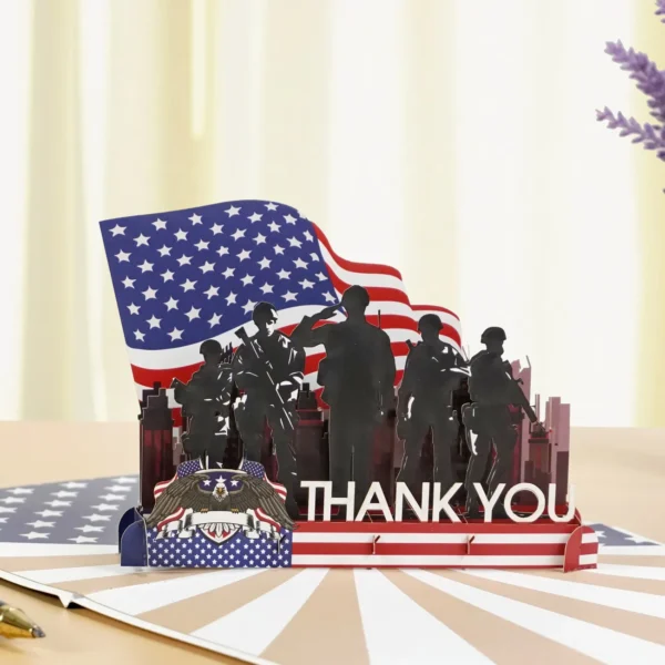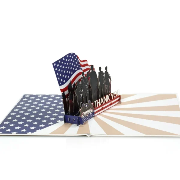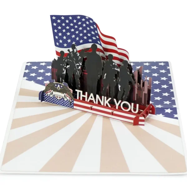 This 3D card is a tribute to honor, service, and sacrifice. Designed to express deep appreciation to military personnel — past and present — it’s perfect for Veterans Day, Memorial Day, Independence Day, or simply as a gesture of gratitude to a hero in your life.