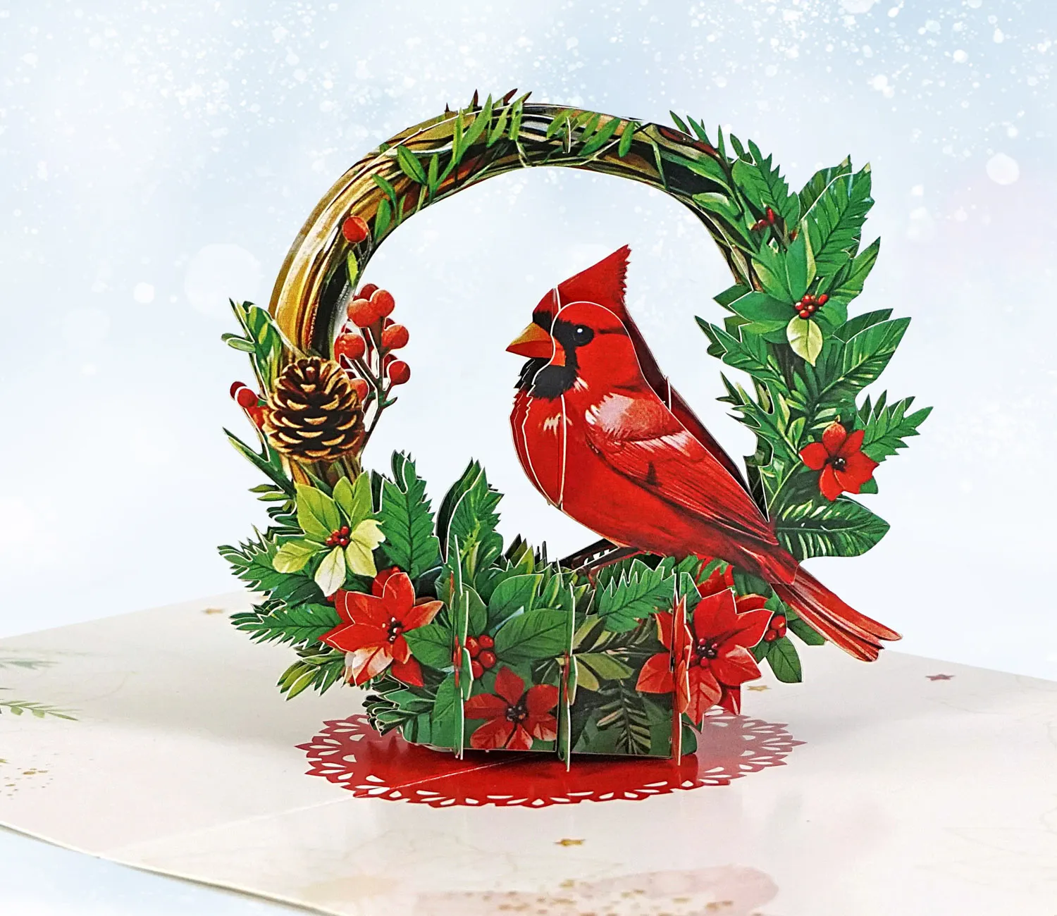 The cardinal bird is a meaningful winter symbol in many cultures, representing hope, guidance, and remembrance. CUT Popup’s Cardinal Wreath design showcases a vibrant red cardinal perched proudly on a ring of evergreen leaves, berries, and winter florals. Elegant, peaceful, and artistically detailed, this card is perfect for sending warm wishes to loved ones, teachers, mentors, and anyone who appreciates natural beauty and classic Christmas symbolism.